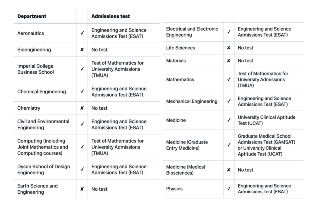 帝国理工大学的本科申请者提交申请时可被考虑在同一入学年度进入五门不同的系/课程,且没有先后顺序之分。但需注意的是,个人自述仅可提交一份,所以申请时只能提交一份覆盖所有想申请专业的个人自述。此外,帝国理工学院许多系都采用入学考试,以下专业为需参加三类不同入学考试的专业。 Engineering and Science Admission Test (ESAT) 是一种基于计算机的评估,由单个多项选择模块组成,每个模块持续 40 分钟。数学 1 和 2 是所有考生的必考模块,除戴森设计工程学院外,其他所有院系都要求必修第三个模块:化学或物理。 Test for Mathematics for University Admissions(TMUA)总时长 2 小时 30 分钟。考试分为两部分。过程中不能使用计算器或字典。值得注意的是,TMUA总成绩没有及格或不及格之分,成绩的最终分数基于答对的答案数量,且答错不会扣分。 University Clinical Aptitude (UCAT)是医学院入学必须参加的考试,其中评估一系列能力包括:语言推理、决策制定、定量推理、抽象推理和情景判断。 除了入学测试以外,帝国理工学院的国际生的语言要求较为特殊。证明英语语言能力水平的证明分为两个等级:标准和更高。官网列举出了每一个语言测试和可用以提交作为证明英语语言水平的两个测试分数。“标准”一般仅为被录取的最低考核分数,许多系要求达到“更高”等级的英语水平分数。 同样的,帝国理工学院不同院系拥有多个不同的入学标准,需通过提交高中学术考试证明来获得基础本科入学资格。且许多官网列举出的分数和学历标准是具体院系的最低入学标准,许多课程的入学要求要高于列举的标准。中国学生申请时可提交的为International Baccalaureate (IB)课程的分数,最低分数为总成绩 38-42 分,相关科目成绩 6-7 分。需注意的是,如果指定数学为想申请进入的部门,则数学研究专项考试不能用来代替数学科目考试。 最后,大多数院系都会对在帝国理工学院申请和入学测试(如适用)中表现出潜力的申请人进行面试。面试形式多种多样,取决于具体申请的课程部门。可能会被邀请参加小组面试,通常会有一到两名部门人员参加,也可能参加招聘日活动,其中还可能包括小组任务、讨论或笔试等其他活动。 申请资料要求 帝国理工学院的申请者的选拔基于申请者学业成绩、UCAS 表格中的信息、入学考试(如适用)以及面试表现(如适用)。根据左边帝国理工学院官网所公布的录取考量标准,学习动机和研究意愿以及为学院生活做贡献的潜力为重要的考量资质。 此外,在个人自述中,申请者应该考虑自己所掌握的有助于参与课程的技能。例如,沟通、时间管理和领导力。展示对课程的理解也是至关重要的。 最后,帝国理工学院通过面试所考量的一些资质有:是对所申请学科和课程感兴趣的原因和学习动机、学习意愿和强烈的职业道德(各院系希望申请者在整个学习期间都能坚持学习—因帝国理工学院是英国所有大学中学时最多的大学,所以申请者的投入程度肯定会受到考验)、时间管理和未来规划。 申请者在准备各种材料时,应该综合的评估自己的材料是否有体现出以上资质。以便于在众多申请者中脱颖而出。